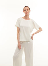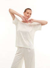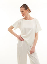 Tričko BASIC — ideální základ pro každý den. Jednoduchý střih s jemným kulatým výstřihem a krátkými rukávy vytváří čistou siluetu, která se snadno kombinuje s jakýmkoli šatníkem. Měkká, hedvábně hladká tkanina poskytuje komfort a jemný lesk. Noste s denimem, oblekovými kalhotami nebo sukní — samostatně nebo ve vrstvených outfitech. Minimalismus, který vždy funguje.