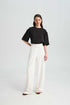 Kalhoty s vysokým pasem a širokými nohavicemi. Zapínají se vpředu na zip a knoflík.