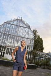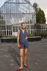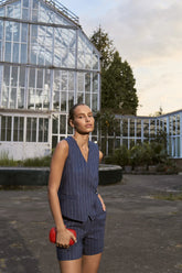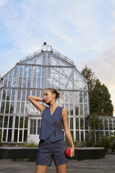 Vesta lněná tmavě modrá s bílými proužky (Sarna) SA022S