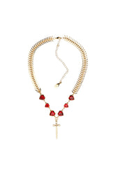 Červený náhrdelník «SWORD AND HEARTS (Grains de Verre) , SwH4