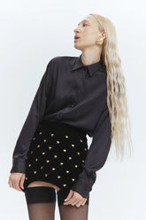 Tato sametová mini sukně nabízí jemný, luxusní pocit díky hladké textuře a lichotivému střihu. Její krátká délka dodává outfitu hravý, přesto elegantní nádech, což ji činí ideální pro volný čas i speciální příležitosti. Snadno se kombinuje s různými topy a obuví, tato sukně bez problémů spojuje pohodlí a styl.