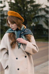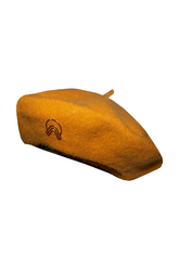 Světlý vlněný barety je klasický doplněk, který se perfektně hodí do každé šatní skříně. Tuto nadčasovou klasiku jsme doplnili zlatým logem NESAMOVYTO z kovu.