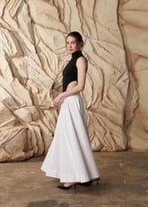 Černé body s vysokými výřezy v pase je vyrobené z měkkého žerzeje a má zapínání na háčky. Výřezy v pase se stanou výrazným doplňkem (vašeho) outfitu.
