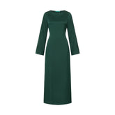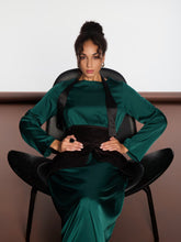 Šaty LAURA — lakonická klasika s důrazem na pas. Rovná, vyvážená silueta s dlouhými rukávy podtrhuje vytříbenost vzhledu, zatímco hloubka a jemnost látky dodávají modelu ušlechtilost. Hlavním detailem je šněrování na zádech, které umožňuje regulovat střih a vytváří ženskou křivku. Maxi délka přináší zdrženlivou dramatičnost a činí tento model univerzálním pro večer, pracovní události i slavnostní příležitosti.