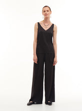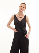 CLASSIC top — timeless, versatile minimalism. The precise V-neckline at the front and back adds softness, while the smooth lines of the cut gently follow the figure. Wide straps make the top ideal for creating clean, graphic silhouettes. The silky fabric ensures comfort and a subtle shine. Wear with a jacket, skirt or denim — for work, evening or casual outfits.