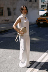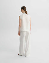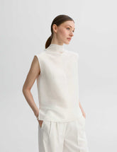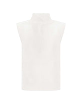 The high-neck top is made of natural silk.