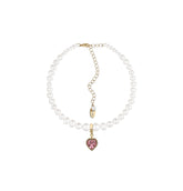 Pearl choker with pink heart, gold color (Grains de Verre), CHH7