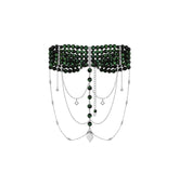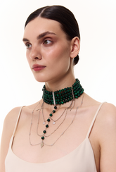 Necklace made of dark green agate. The fittings are made of brass with a rhodium-plated finish, the pendants are set with zircons. Nickel-free.