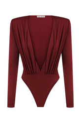 Body s hlubokým výstřihem do V vínová (Kolosova) K0026A