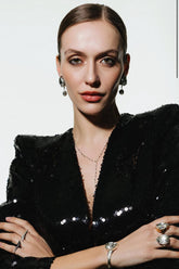 Clip-on earrings "RADIANCE" silver, (Grains de Verre) EWLC1