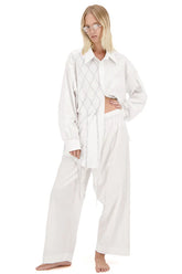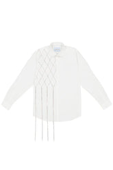 Shirt hand-embroidered with a chain of crystal stones in a diamond mesh pattern