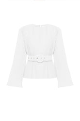 The set includes a top, skirt and belt.