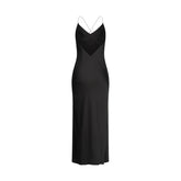BARBIE dress — minimalism that attracts attention. The delicate cut with a deep V-neck in the front and an open back emphasizes the femininity and fragility of the silhouette. Thin straps crisscrossing the back look delicate and give the model a refined accent. The maxi length and flowing fabric create the effect of soft movement. An ideal choice for evening events, dates or festive moments — combine with heels, sandals or even a jacket for a contrasting look.