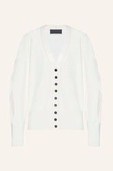 A cashmere cardigan in soft wool with a fitted cut and a deep V-neck. Functional slits on the sleeves add originality and comfort, while the button fastening underlines the subtle style. Ideal for everyday and evening outfits.
