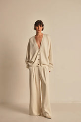 В'язані штани палаццо молочного кольору (T.MOSCA) BW25-01