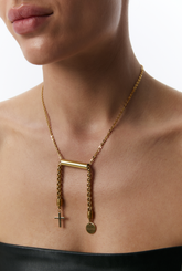 Намисто "Libra" з хрестиком, золото, (Grains de Verre) NLib2