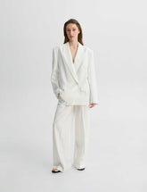 Штани палаццо середньої талії з шовку та віскози. Вони мають класичні бічні кишені та не мають підкладки. Застібка включає блискавку та ґудзик.