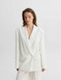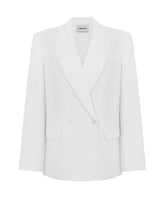 Довгий піджак прямого крою з шовку та віскози. Він має застібку на два ґудзики, дві передні кишені з клапанами та широкі, вільні рукави з підплічниками. Піджак має підняту лінію плечей, розріз ззаду та закруглені низи.