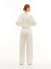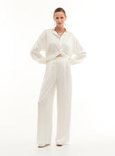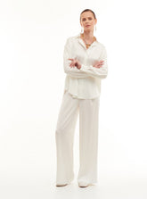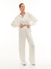 Штани BASIC — втілення невимушеної елегантності. Модель із високою талією, м’яким еластичним поясом та широкими штанинами створює елегантний силует і забезпечує абсолютний комфорт. Простий дизайн дозволяє легко стилізувати як повсякденні, так і вечірні образи. Ідеально поєднуються з топами, блузками або жакетами.