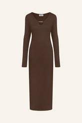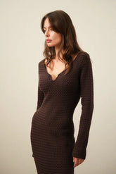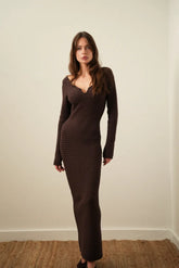 В'язана сукня з відкритими плечима коричневого кольору, (T.MOSCA) POL25-02 коричневий