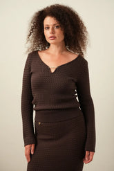 В'язаний светр коричневий, (T.Mosca) SOL25-02 коричневий