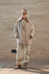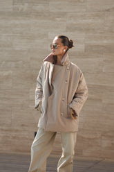 Двобортний піджак з архітектурним кроєм, створений для тепла та комфорту в холодну погоду. Розроблений для температур до -10°C, він має знімний хутряний комір, який дозволяє змінювати настрій вашого вбрання – від мінімалістичного до затишної м’якості. Універсальна довжина та вільний крій роблять піджак зручним для щоденного носіння та стильних випадків.